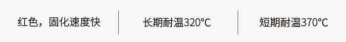 红色,长期耐温320℃,短期耐温370℃,固化速度快,可粘接金属、玻璃等多种材质,适用于高温工况的密封与粘接。