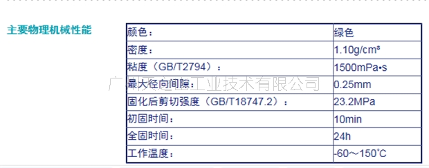 中粘度,高强度,耐溶剂性能好,用于间隙小于0.25mm过渡或间隙配合,如固持套管、齿轮、转子等。